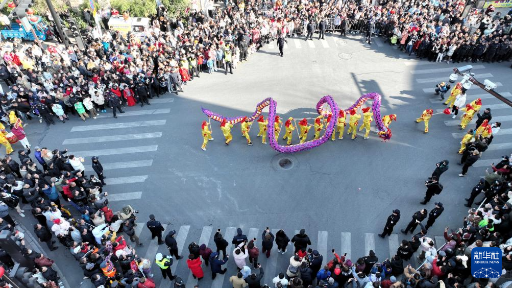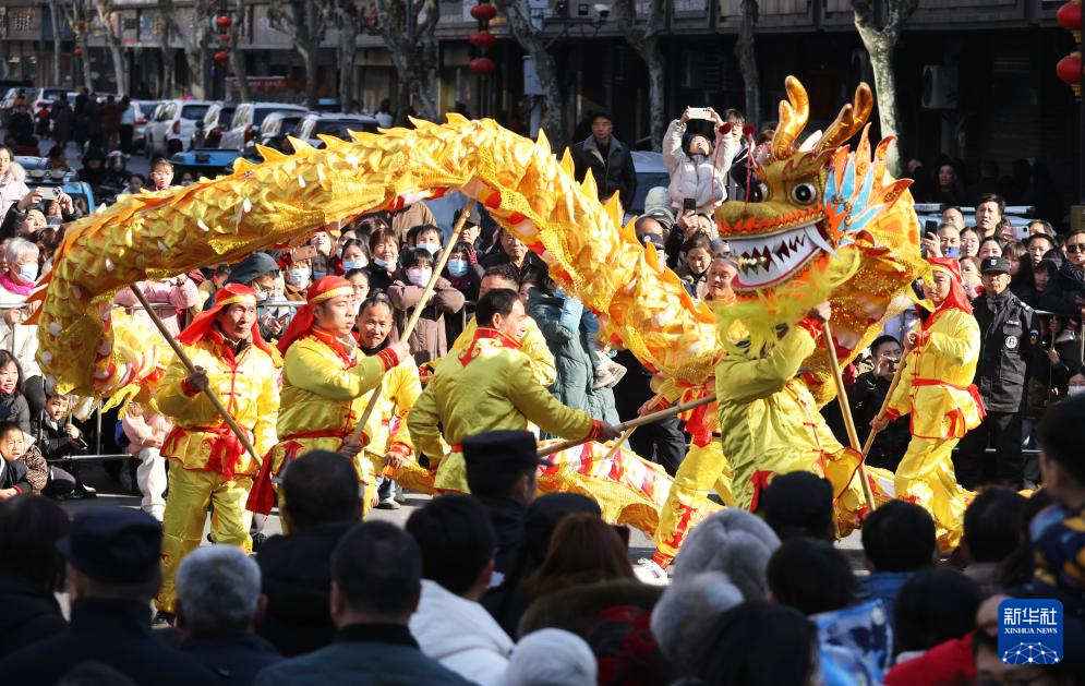 2月9日,民間藝人在浙江省湖州市德清縣乾元鎮(zhèn)進(jìn)行舞龍表演。