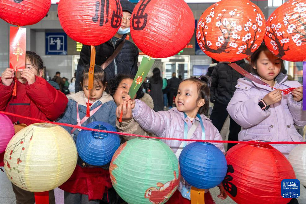2月11日,孩子們在江西鷹潭北站猜燈謎。