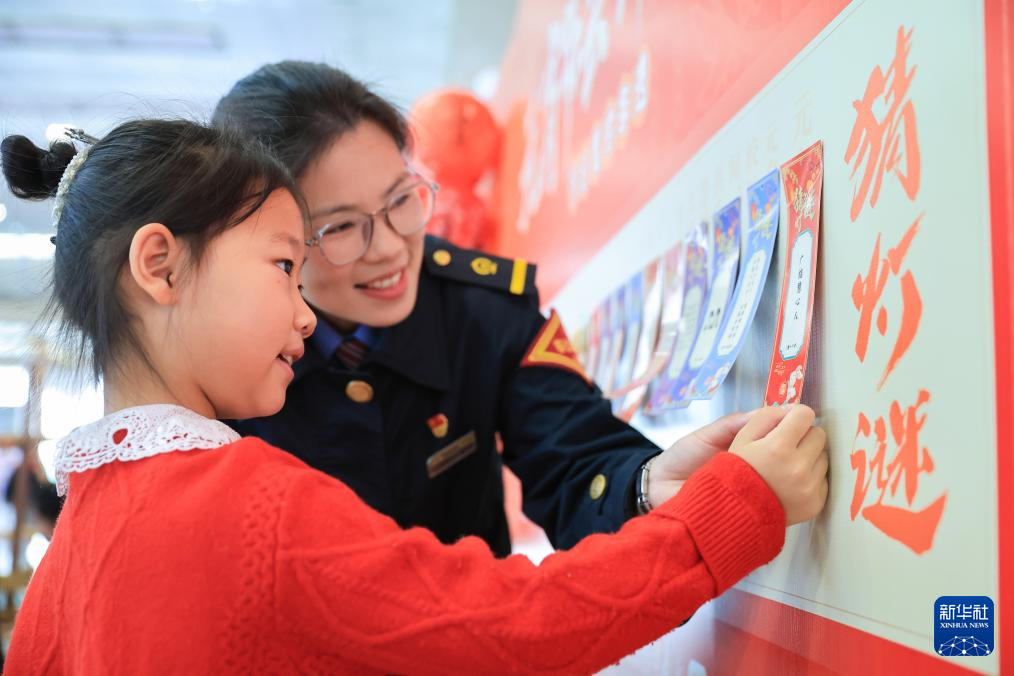 2月11日,小朋友在南京南站舉辦的迎接元宵節(jié)活動上猜燈謎。