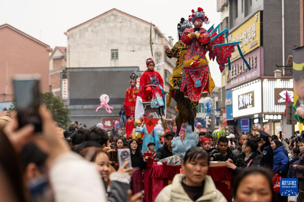 2月11日,在湖南省汨羅市長樂鎮(zhèn),人們參加抬閣故事會。“長樂抬閣故事會”是長樂鎮(zhèn)當(dāng)?shù)匾豁?xiàng)傳承千年的元宵節(jié)民俗活動,2011年入選國家級非物質(zhì)文化遺產(chǎn)擴(kuò)展項(xiàng)目名錄。