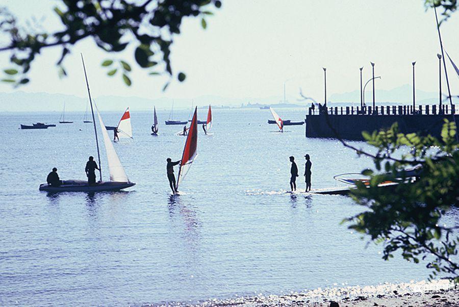 昔日匯泉灣,從事水上運動的人們。