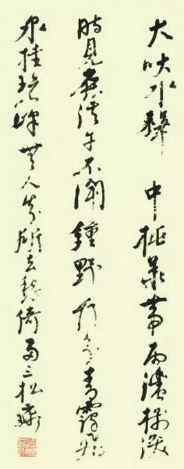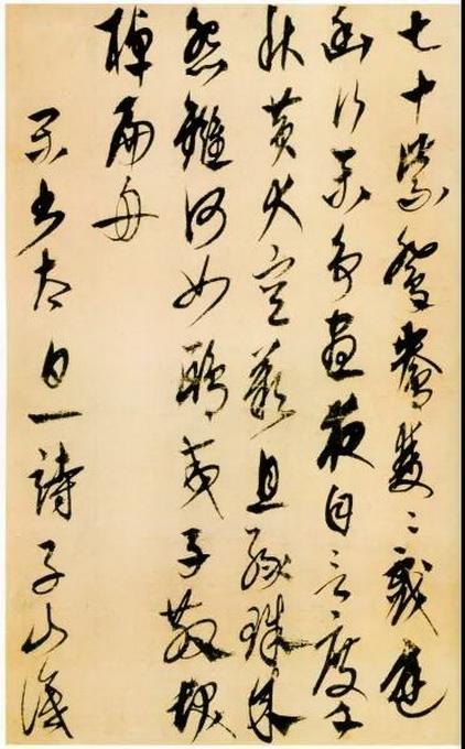 其草書豎幅《李白古風詩卷》,縱35.0cm,橫63.8cm,現藏日本東京國立博物館。書風勁健清新,善以懸腕作書,行筆爽利干脆,結體縱長,流暢而不浮滑,但是往往在最后一筆用力一挑或一頓,難免顯得有些刻露。在當時世趨趙孟頫書風的情況下,能走出自己的道路,作為杰出的少數民族書法家特立于書壇。