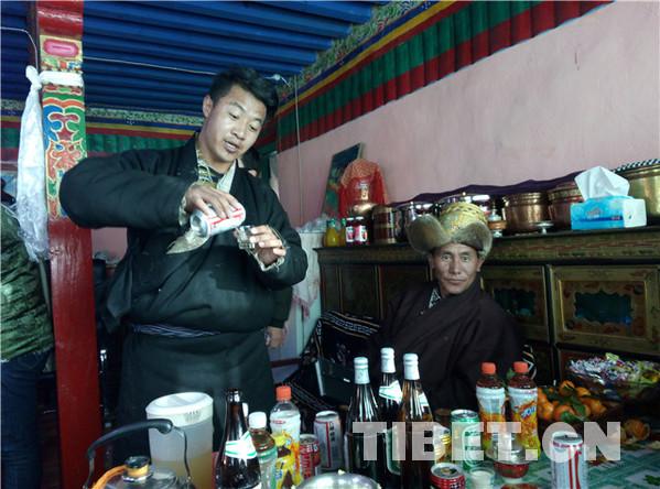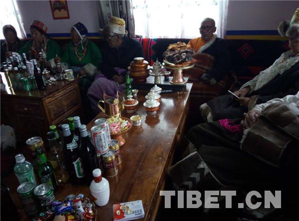 據(jù)了解,在藏歷十月三十白天,婦女們給孩子和自己洗發(fā),準(zhǔn)備過年的材料,如釀制青稞酒、制作油炸果子等。晚上10點左右,家中派出男性,舉行驅(qū)鬼儀式。大年初一的上午,全村的男人們騎上駿馬,到村落的山神處祭祀,更換經(jīng)幡,誦經(jīng)祈福。各家各戶回家后就在家中聚會,一般是不出去的,個別時候,家中派出兩三個青年男女手持青稞酒和酒碗,端著切瑪盒,切瑪盒內(nèi)裝有青稞、糌粑、五彩的吉祥草,帶上青稞酒,到隔壁鄰居或親戚家拜年,見面后,互相祝福吉祥,敬獻(xiàn)青稞酒,各自抓起對方切瑪盒內(nèi)的青稞粒拋向空中,摔三下,祭拜天、地、神,祈禱新年吉祥如意。