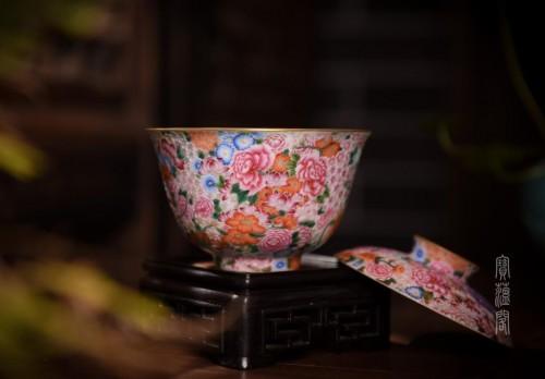琺瑯彩萬花描金蓋碗
