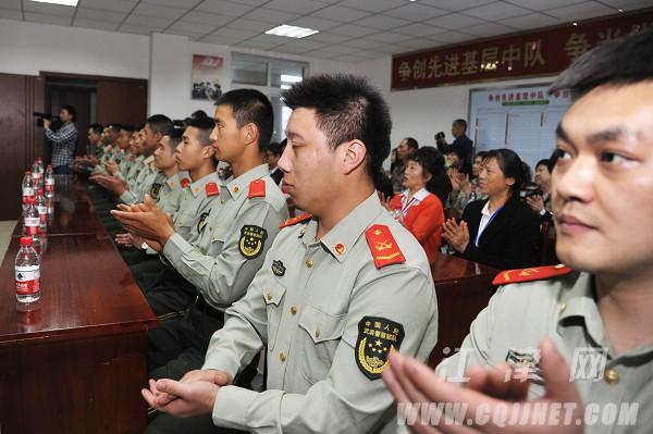 4月24日,“帥鄉(xiāng)兵媽媽”陳麗萍等6名市級勞模走進武警江津中隊,與武警官兵共話軍民魚水深情。市級勞模李立衡還以《抗震精神與人生觀》為題,為武警官兵講述了自己親歷的“5·12”汶川地震救援中的感人事跡,并以習近平總書記“弘揚抗震精神,為實現(xiàn)中國夢注入強大動力”勉勵武警官兵。記者 李皓 實習記者 汪坤玉 攝