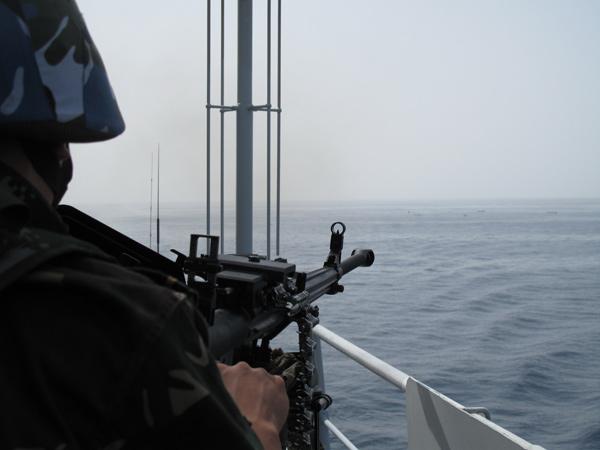 “噠噠噠……”,特戰(zhàn)隊員扣動扳機,重機槍發(fā)出猛烈的怒吼,呼嘯而出的子彈在海盜快艇前筑起一道難以逾越的火線,海盜見狀,頓時慌了手腳,急忙調(diào)轉(zhuǎn)船頭,倉皇逃竄。