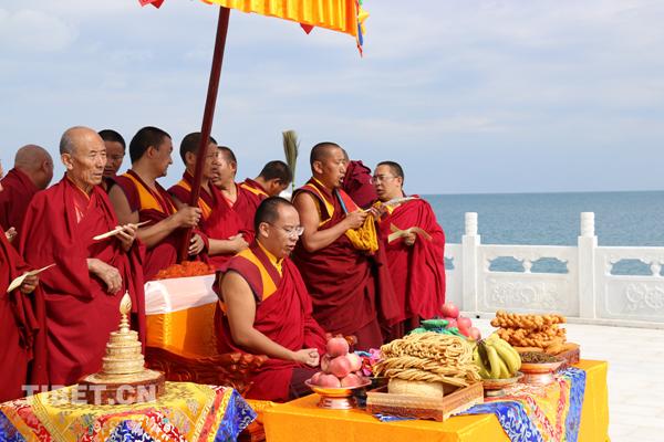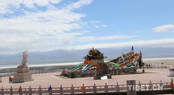 十一世班禪在青海湖邊的祭湖臺(tái)前祈福。