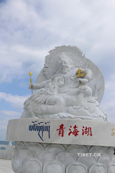 7月23日上午10點(diǎn),青海湖二郎劍景區(qū)祭海臺(tái)上,一隊(duì)肅立的藏傳佛教僧人簇?fù)碇晃欢俗ㄅ_(tái)前的年輕僧人,虔誠(chéng)念誦經(jīng)文,祈禱世界和平,國(guó)泰民安,風(fēng)調(diào)雨順,生態(tài)平衡,眾生幸福。這些僧人的絳紅色僧衣,映襯著青海湖碧藍(lán)色的波濤和水洗般的天空,袈裟和經(jīng)幡隨風(fēng)翻飛,發(fā)出噼啪的聲音,漢白玉雕塑的青海湖湖神塑像,屹立在祭海臺(tái)的中央。這是十一世班禪來(lái)到青海湖。祭祀祈福的經(jīng)文念誦結(jié)束后,一位僧人拿出裝藏好的寶瓶,從祭海臺(tái)走到湖邊,將寶瓶投入蔚藍(lán)色湖水中。這是藏傳佛教傳統(tǒng)的祭湖儀式。看到這一景象,周邊的人們心底都無(wú)由生起衷心的歡喜,相信這個(gè)寶瓶承載的美好希望一定能夠如愿如意。