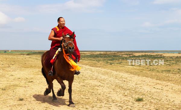 十一世班禪今年二十七歲,風(fēng)華正茂青春時(shí)。大部分時(shí)候人們看到他,都是在進(jìn)行莊嚴(yán)肅穆的法事、會(huì)議、拜見、會(huì)見等活動(dòng),大家看到的是大師的文質(zhì)彬彬、溫文爾雅。大師的談吐也展示出廣博深邃的知識(shí)和高雅的修養(yǎng)。但是今天他策馬奔馳、衣袂飄飄地出現(xiàn)在青海湖邊的景象,讓大家又似曾相識(shí)。對(duì)了,十世班禪也是愛馬如癡,曾經(jīng)在藏區(qū)考察調(diào)研時(shí),經(jīng)常騎馬馳騁,也曾飼養(yǎng)過(guò)很多名馬。