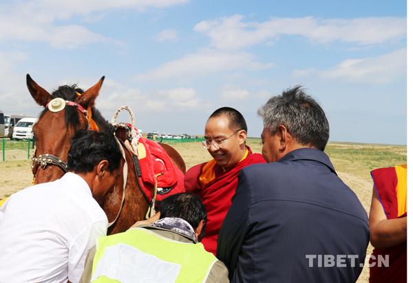 祭海儀式結(jié)束后,十一世班禪一行環(huán)湖游覽,在湖邊見到牧民斗改杰一家正牽著馬迎候。他們希望瞻禮到大師的尊容,為自己帶來(lái)福運(yùn)。十一世班禪一時(shí)興起,想要騎騎他們的馬。斗改杰一家平時(shí)在青海湖二郎劍景區(qū)經(jīng)營(yíng)旅游騎馬項(xiàng)目,沒想到今天這樣幸運(yùn),十一世班禪騎著他們的馬,在青海湖邊七月鮮花盛開的草原上,瀟灑地馳騁了幾個(gè)來(lái)回。他們激動(dòng)地都說(shuō)不出話了。