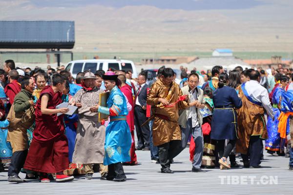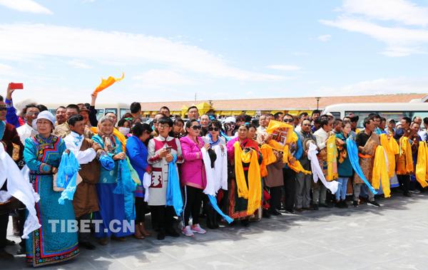 海西州蒙古族藏族信眾歡迎十一世班禪的到來(lái)。