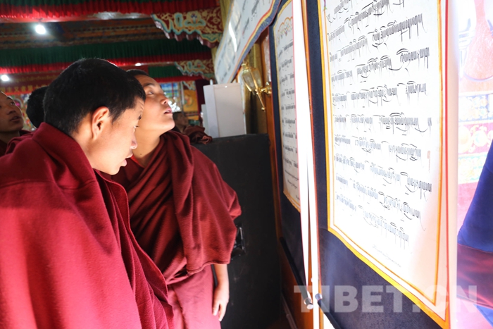 此次活動(dòng)共征集書法作品80余幅,包含藏文、梵文、漢文、英文,其中藏文書法當(dāng)中又有烏金和烏梅體、草書體和古藏文體等多種書法類型,不僅展現(xiàn)了藏文書法精美多樣的字體和悠久歷史,而且表達(dá)了全寺僧眾深切緬懷大師的至真感情和銘記大師教誨,積極發(fā)揚(yáng)藏傳佛教愛國愛教優(yōu)良傳統(tǒng)的堅(jiān)定信心。(中國西藏網(wǎng) 記者/索朗加措、趙耀 圖片由扎什倫布寺寺管會(huì)提供)