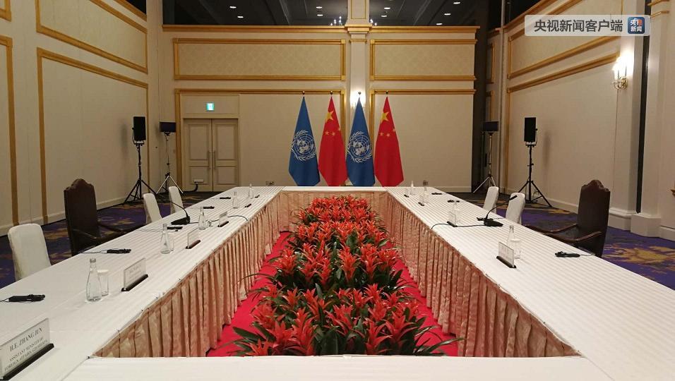 習(xí)近平與古特雷斯會(huì)見的會(huì)場。(央視記者黃京輝拍攝)