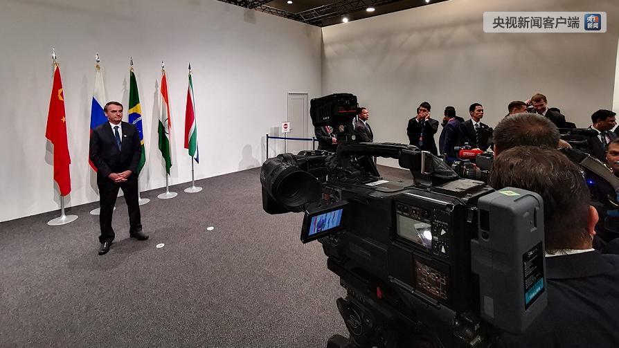 巴西總統(tǒng)博索納羅提前來到合影區(qū)等候。(央視記者張曉鵬拍攝)