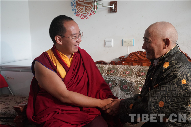 十一世班禪在參加各項活動期間,專程看望阿里地區(qū)“雙集中”供(收)養(yǎng)服務(wù)中心的老人和孩子們,并為每一位老人摸頂賜福,噓寒問暖,給老人和孩子們帶去了親人般的關(guān)懷。一位老阿媽(嬤啦)當(dāng)場緊緊拉著十一世班禪的手放在自己的額頭,感動流淚,嘴里不停地說“突吉其,突吉其”(謝謝!謝謝?。J皇腊喽U和老人們圍坐在一起飽含深情地說:“在黨中央的關(guān)心關(guān)懷下,老人家弱有所扶、老有所養(yǎng)、病有所醫(yī)、住有所居,這充分體現(xiàn)了社會主義制度的無比優(yōu)越性,看到你們健康幸福的生活我很欣慰,我會為你們祈禱,我會再來看望你們?!背錆M溫情的一幕使在場人員無不動容。