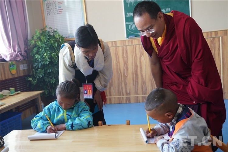 在寬敞明亮的教室里,十一世班禪看望了福利院的孩子們,看到兒童福利院的員工們耐心周到的工作作風(fēng),孩子們穿著整齊漂亮的民族服裝,生活在溫馨舒適的生活環(huán)境里,受到體貼入微的照顧和良好的教育,十一世班禪感到十分高興和感動。十一世班禪說:“學(xué)校環(huán)境很好,要好好學(xué)習(xí),將來才能更好地建設(shè)家鄉(xiāng)?!?/p>