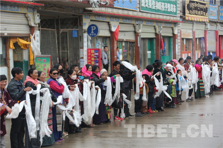 恰逢“羌塘恰青格薩爾賽馬藝術(shù)節(jié)”開幕,各地的僧俗信教群眾從方圓幾百公里的牧區(qū)趕來,他們身著盛裝,手捧哈達(dá),滿含期待地在那曲市道路兩邊恭迎全國政協(xié)常委、中國佛教協(xié)會(huì)副會(huì)長(zhǎng)、中國佛教協(xié)會(huì)西藏分會(huì)會(huì)長(zhǎng)班禪額爾德尼?確吉杰布重返家鄉(xiāng)那曲。