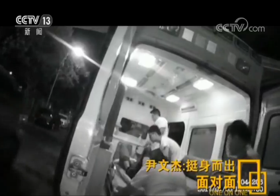 尹文杰:身上發(fā)麻的那種感覺(jué),就感覺(jué)胸口越來(lái)越,好像流血越來(lái)越多了。后來(lái),警車(chē)來(lái)了。看到警車(chē),我就手稍微抬起來(lái)?yè)]了一下,但是好像也沒(méi)力氣,民警一下車(chē),我就倒下了。