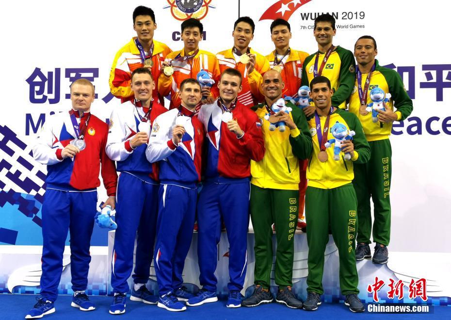 武漢軍運(yùn)會(huì) 中國隊(duì)獲男子4x50米混合救生接力賽冠軍