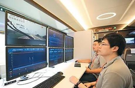 2016年7月15日,兩列中國標(biāo)準(zhǔn)動車組在鄭徐高鐵實現(xiàn)世界首次時速420公里交會和重聯(lián)運(yùn)行。圖為鐵科院試驗團(tuán)隊成員密切監(jiān)控列車高速運(yùn)行狀態(tài)。(圖片來源:新華視點(diǎn))
