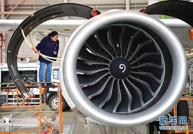 中國飛行試驗研究院C919試飛團(tuán)隊發(fā)動機(jī)主管杜毅潔在查看C919客機(jī)101架機(jī)的發(fā)動機(jī)檢修情況。(圖片來源:新華網(wǎng))
