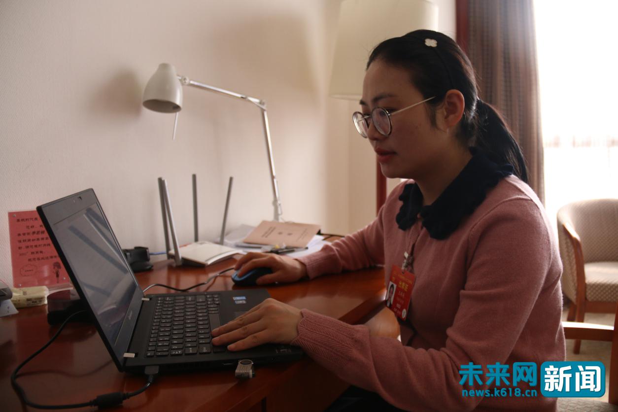 王萌萌在準(zhǔn)備2019年全國兩會(huì)小組發(fā)言內(nèi)容。未來網(wǎng)記者 朱延生攝