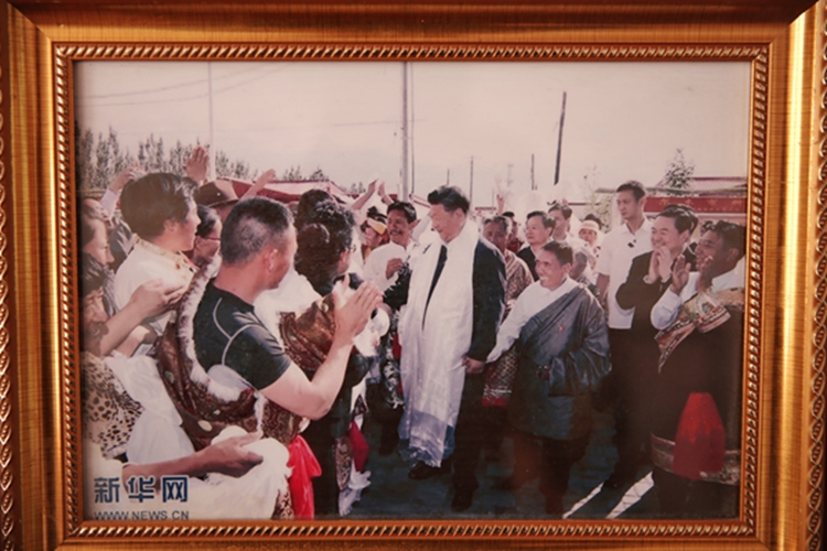 2016年8月22日下午,習近平總書記來到格爾木市唐古拉鎮(zhèn)長江源村考察,新華社刊發(fā)的新聞圖片中,習近平總書記拉著一位藏族老人的手和群眾交談的照片讓人印象深刻——這位老人就是長江源村曾經(jīng)的老村支書更尕南杰。更尕南杰將這張珍貴的照片精心裝裱,放在家中最醒目的位置。