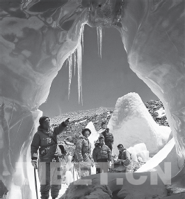 置身于希夏邦馬冰洞中的科考隊員。右二為施雅風(fēng)