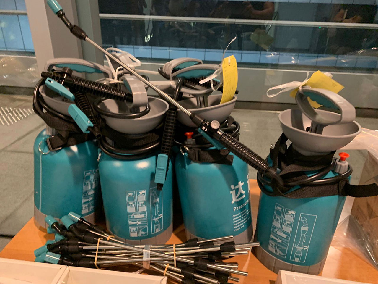 另外,警方在西環(huán)也拘捕六男兩女共8人,年齡介于19至35歲,檢獲通渠水、噴漆、油漆、斧頭、電動棒球發(fā)射器,還有大量假記者證。