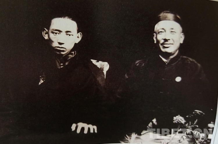 圖為黃慕松(圖右)與西藏地方攝政五世熱振活佛攝于拉薩(喜饒尼瑪提供)
