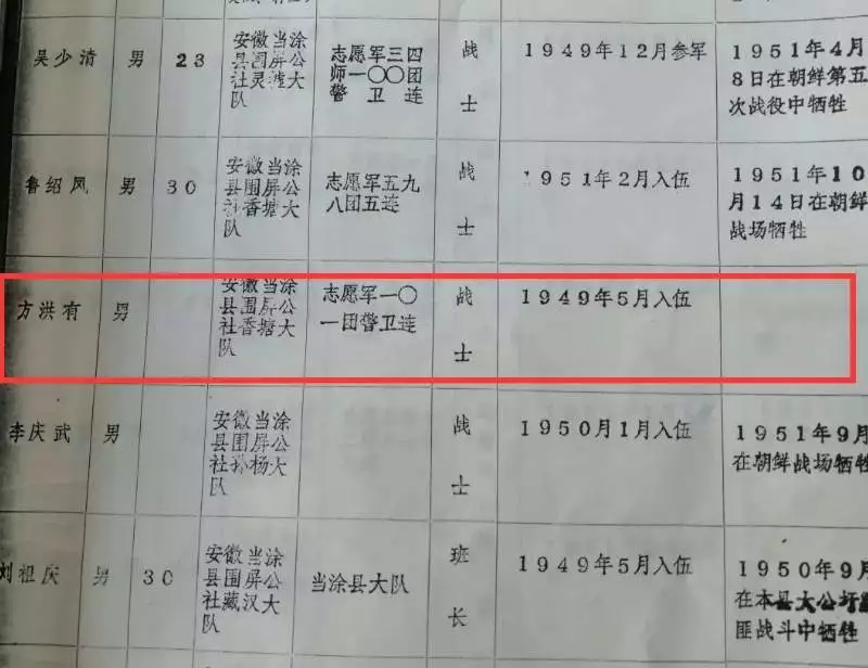 烈士方洪有幼年父母雙亡