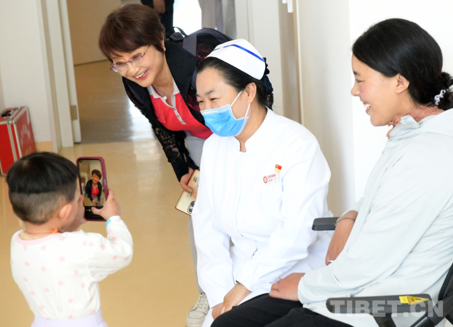 圖為斯曲卓瑪在北京口腔醫(yī)院病房給來看望她的阿姨拍照留念(唐召明2025年6月3日攝)