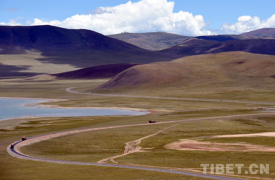 這是一條由牛羊馱隊蹄印演變而成、通往那曲西部的平坦公路。如今的汽車運輸早已替代了過去的牛羊馱隊運輸(唐召明2017年6月24日攝)