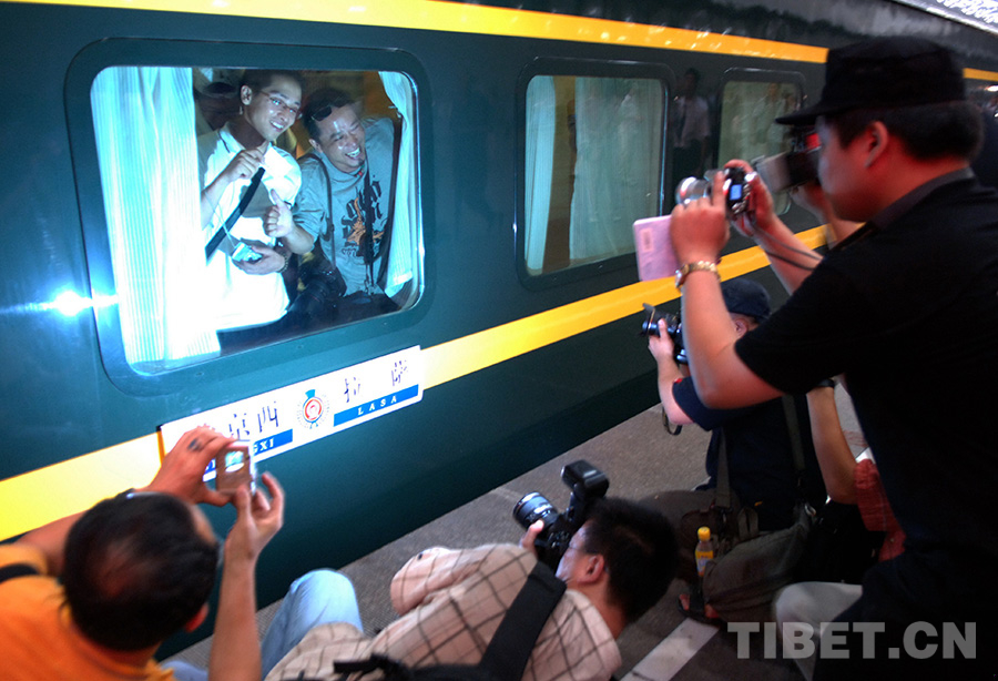 我作為與北京鐵路局的這趟列車結(jié)下不解之緣的采訪者,特意從北京飛抵拉薩,只為親身陪伴它走完這具有歷史意義的一程。站臺(tái)上,我與許多眼中噙滿淚水的乘務(wù)員一樣,心中滿是不舍。
