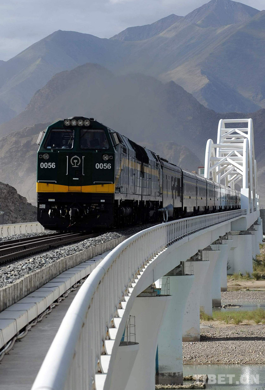 這是由拉薩開往北京的京藏列車正在通過(guò)拉薩河特大橋(唐召明2010年7月7日攝)