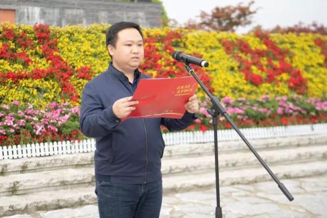 中共湖南省委常委、宣傳部長蔡振紅為湖南日報(bào)、紅網(wǎng)蹲點(diǎn)記者代表授旗。