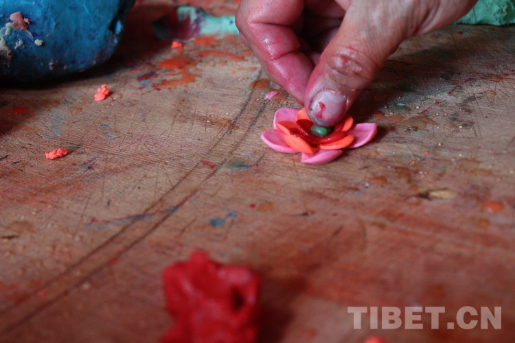 圖為即將完成的用來裝飾大型酥油花的小酥油花 攝影:澤仁措姆