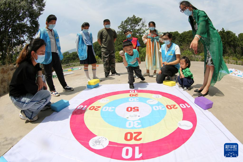 5月28日,在江蘇省連云港市連云區(qū)連島街道,孩子們在體驗端午習俗“射五毒”。新華社發(fā)(朱華南 攝)