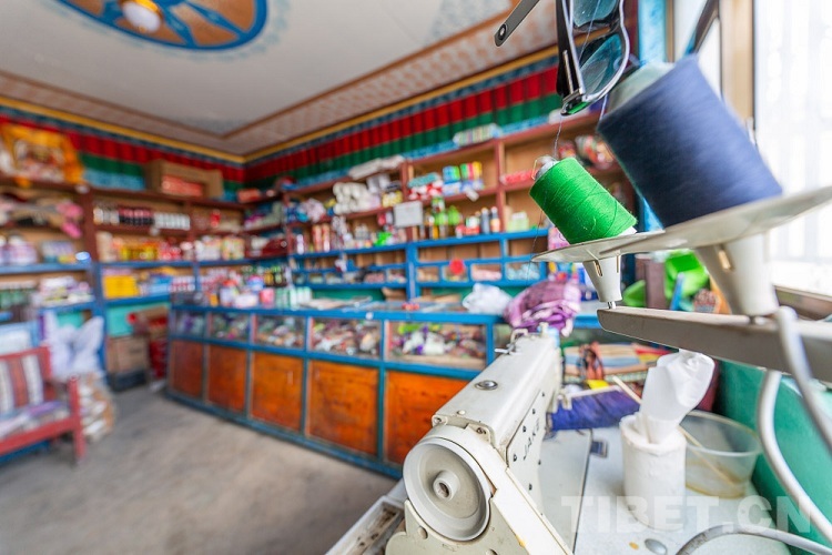 圖為央金白姆的縫紉機和小賣部 攝影:趙耀