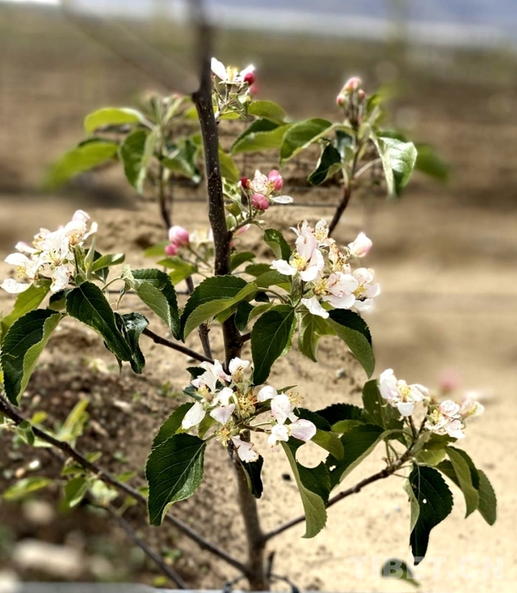 圖為西藏自治區(qū)山南市貢嘎縣昌果鄉(xiāng)團結(jié)新村矮化蘋果基地種植的矮化蘋果已開花 圖片由西藏自治區(qū)山南市貢嘎縣昌果鄉(xiāng)團結(jié)新村提供