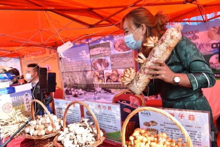 豐收的成果就要“曬”出來。一邊是精彩紛呈的表演,一邊則是品種豐富的現(xiàn)場展示。在活動現(xiàn)場,19個鄉(xiāng)鎮(zhèn)和10多個龍頭企業(yè)的上百種特色優(yōu)質農(nóng)產(chǎn)品搬上各自的展臺,華藏寺鎮(zhèn)的蕨麻豬肉、打柴溝鎮(zhèn)的高原夏菜、炭山嶺鎮(zhèn)的羊羔肉、抓喜秀龍鎮(zhèn)的白牦牛肉、松山鎮(zhèn)的滑子菇、天堂鎮(zhèn)的中藥材、西大灘鎮(zhèn)的百合、大紅溝鎮(zhèn)的藏地雪雞等都是游客們爭相品嘗購買的“香餑餑”?!斑@是天祝白牦牛肉干,歡迎大家選購品嘗?!背爽F(xiàn)場人頭攢動,線上直播也是一片熱鬧。在直播帶貨現(xiàn)場,20多名網(wǎng)紅在直播中為天祝農(nóng)特產(chǎn)品 “吆喝”,深入挖掘本地原產(chǎn)經(jīng)濟,通過直播新技術帶動農(nóng)牧民群眾創(chuàng)業(yè)增收。