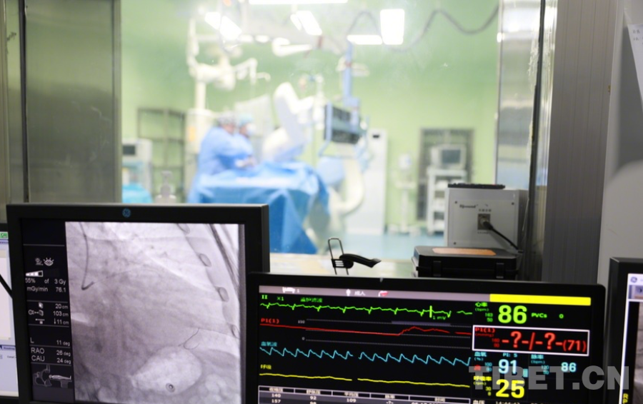 制定好手術(shù)方案后,陰赪茜馬上開始為患者施行微創(chuàng)心臟介入手術(shù),經(jīng)過右側(cè)前臂的橈動脈將微創(chuàng)的手術(shù)器械抵達(dá)病變的心臟血管。
