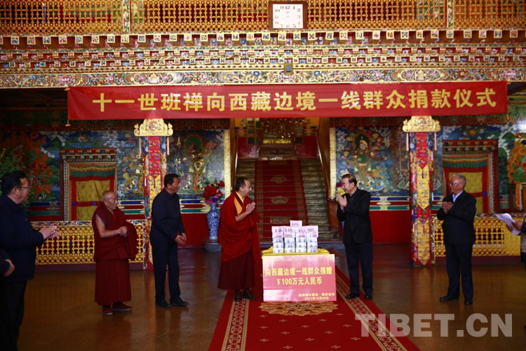 秉承佛教慈悲濟世精神,班禪向來心系蒼生、善信天下。在考取“嘎欽”佛學學位后,班禪決定將社會各界所贈與的鼓勵禮金回饋社會,于10月29日在日喀則市德慶格桑頗章捐贈100萬元,用于幫助西藏邊境一線群眾提升和改善生產生活。西藏自治區(qū)黨委常委、統(tǒng)戰(zhàn)部長旦科作為代表接受捐贈。