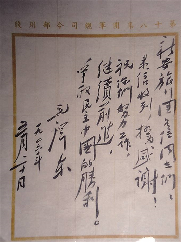 抗戰(zhàn)勝利后,新安旅行團(tuán)給毛主席寫信,匯報(bào)工作和學(xué)習(xí)情況,表達(dá)在黨的領(lǐng)導(dǎo)下堅(jiān)持革命斗爭(zhēng)的決心和信心。1946年5月20日,毛主席親筆給“新旅”復(fù)信:“新安旅行團(tuán)全體同志:來(lái)信收到,極為感謝!祝你們努力工作,繼續(xù)前進(jìn),爭(zhēng)取民主中國(guó)的勝利?!比缃?,這封珍貴回信的復(fù)制件就保存在新安旅行團(tuán)歷史紀(jì)念館。
