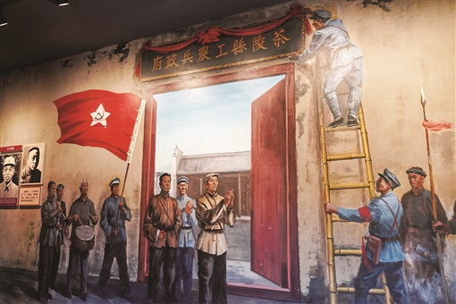 茶陵縣工農(nóng)兵政府舊址展廳里的油畫。 顧榮 攝