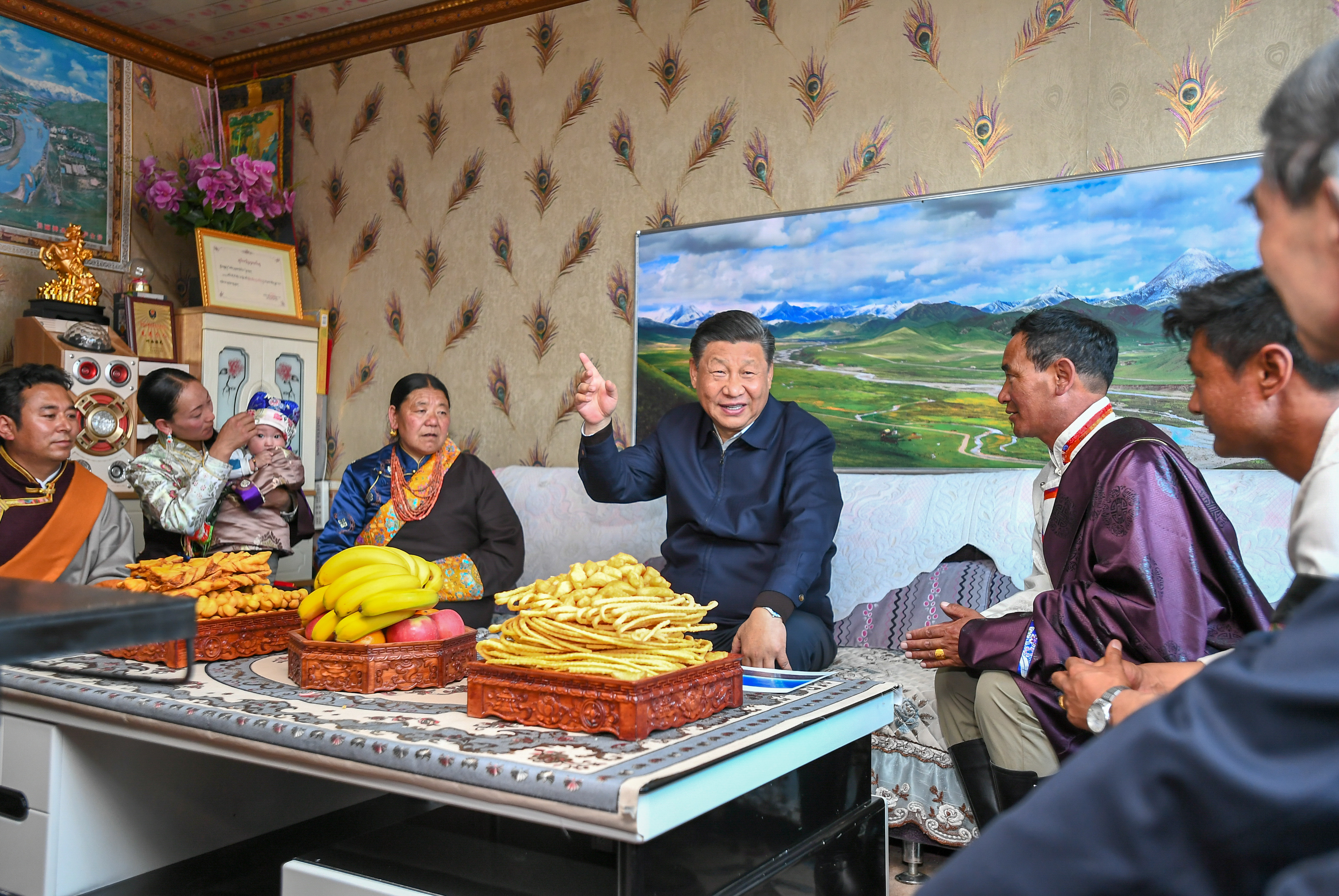 8日下午,習近平總書記來到海北藏族自治州剛察縣沙柳河鎮(zhèn)果洛藏貢麻村,走進牧民索南才讓家中,看望慰問藏族群眾。索南才讓說,牧民生活好,全靠黨的政策好,衷心感謝黨、衷心感謝總書記。習近平指出,我們黨成立一百年了,為什么老百姓衷心擁護中國共產(chǎn)黨?因為我們黨始終全心全意為人民服務、為各民族謀幸福。我們一百年來取得的成績,贏得了民心,在建設社會主義現(xiàn)代化國家新征程上,我們要走得更好。