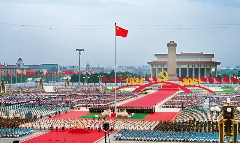2021年7月1日上午,慶祝中國(guó)共產(chǎn)黨成立100周年大會(huì)在北京天安門廣場(chǎng)隆重舉行。習(xí)近平總書記在大會(huì)上莊嚴(yán)宣告,我們實(shí)現(xiàn)了全面建成小康社會(huì)的第一個(gè)百年奮斗目標(biāo)。圖為慶祝大會(huì)現(xiàn)場(chǎng)。 李舸/攝