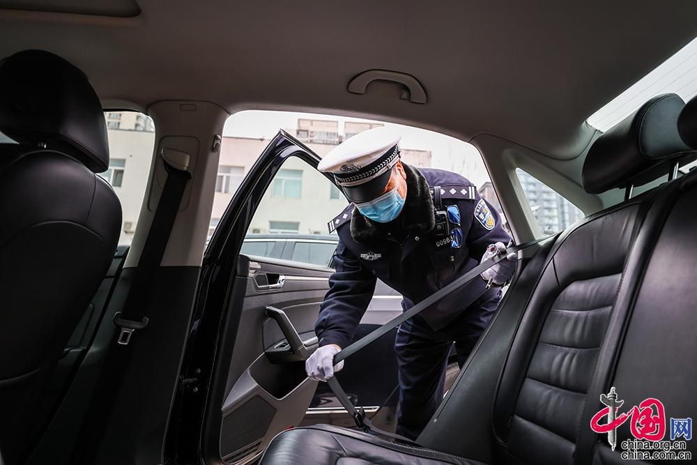 專(zhuān)業(yè)檢查人員逐一對(duì)車(chē)內(nèi)安全帶進(jìn)行檢查并記錄。中國(guó)網(wǎng)記者 鄭亮攝