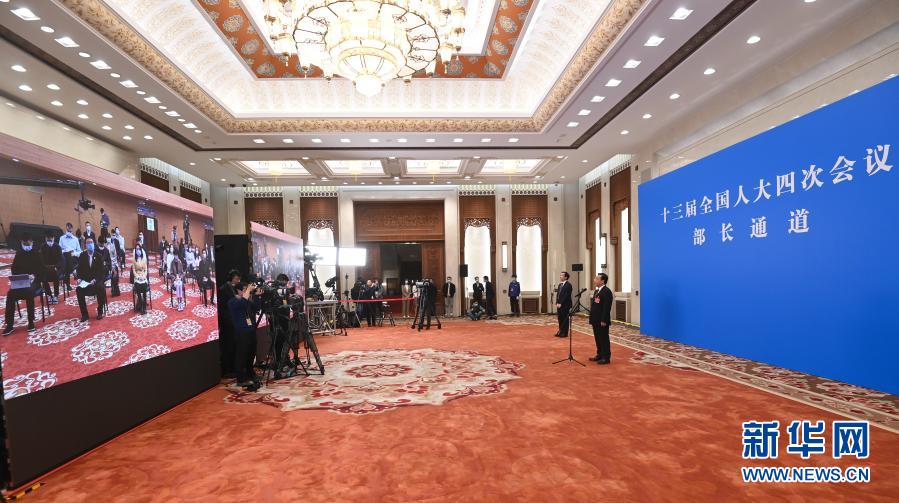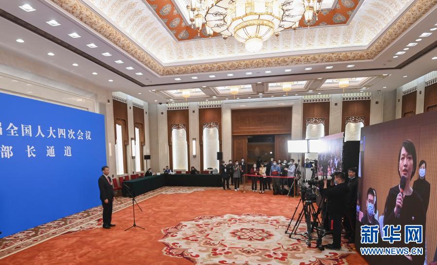 3月5日,第十三屆全國人民代表大會第四次會議舉行首場“部長通道”采訪活動。這是記者在分會場通過網(wǎng)絡(luò)視頻方式提問。新華社記者 曹燦 攝