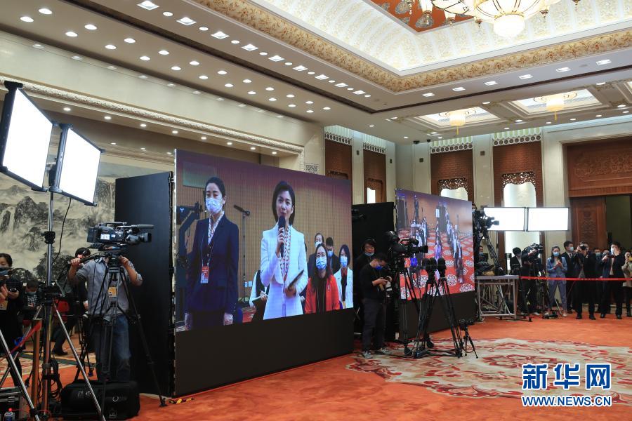 3月4日晚,十三屆全國(guó)人大四次會(huì)議在北京人民大會(huì)堂新聞發(fā)布廳舉行新聞發(fā)布會(huì),大會(huì)發(fā)言人張業(yè)遂就會(huì)議議程和人大有關(guān)工作回答中外記者提問。這是記者在分會(huì)場(chǎng)通過網(wǎng)絡(luò)視頻方式采訪。新華社記者 金良快 攝